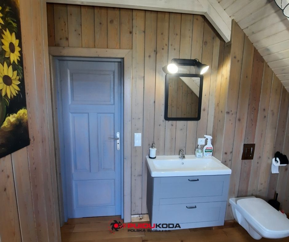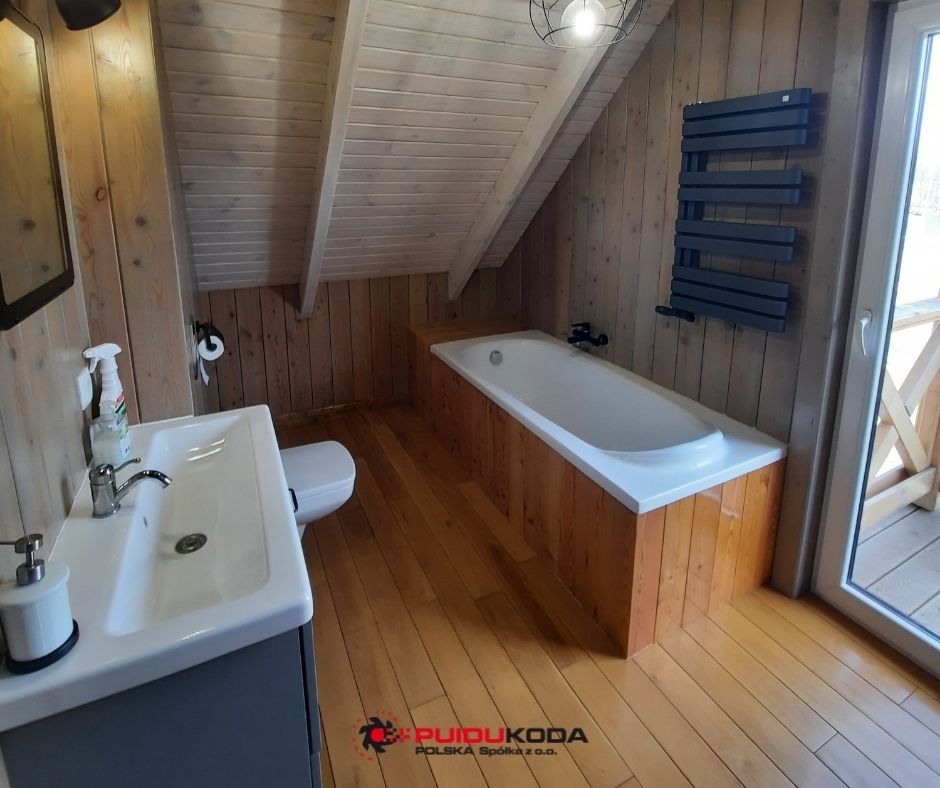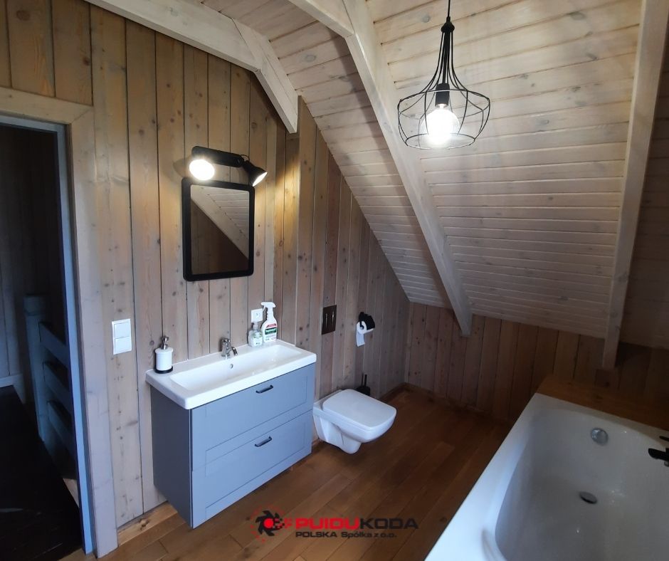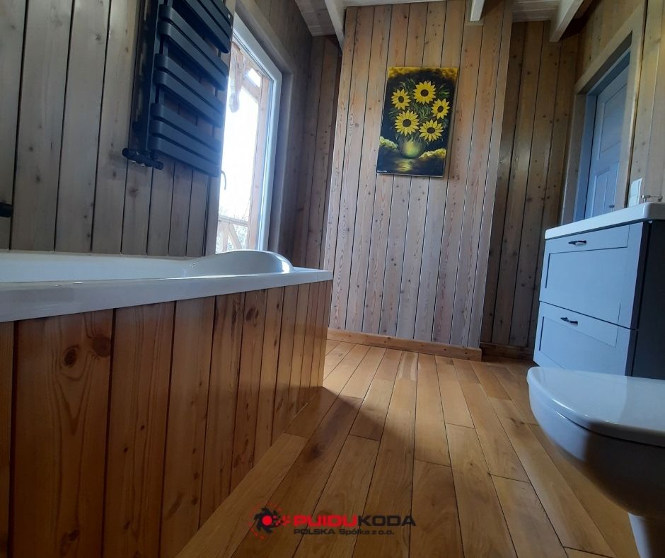 Łazienka z modrzewiem syberyjskim