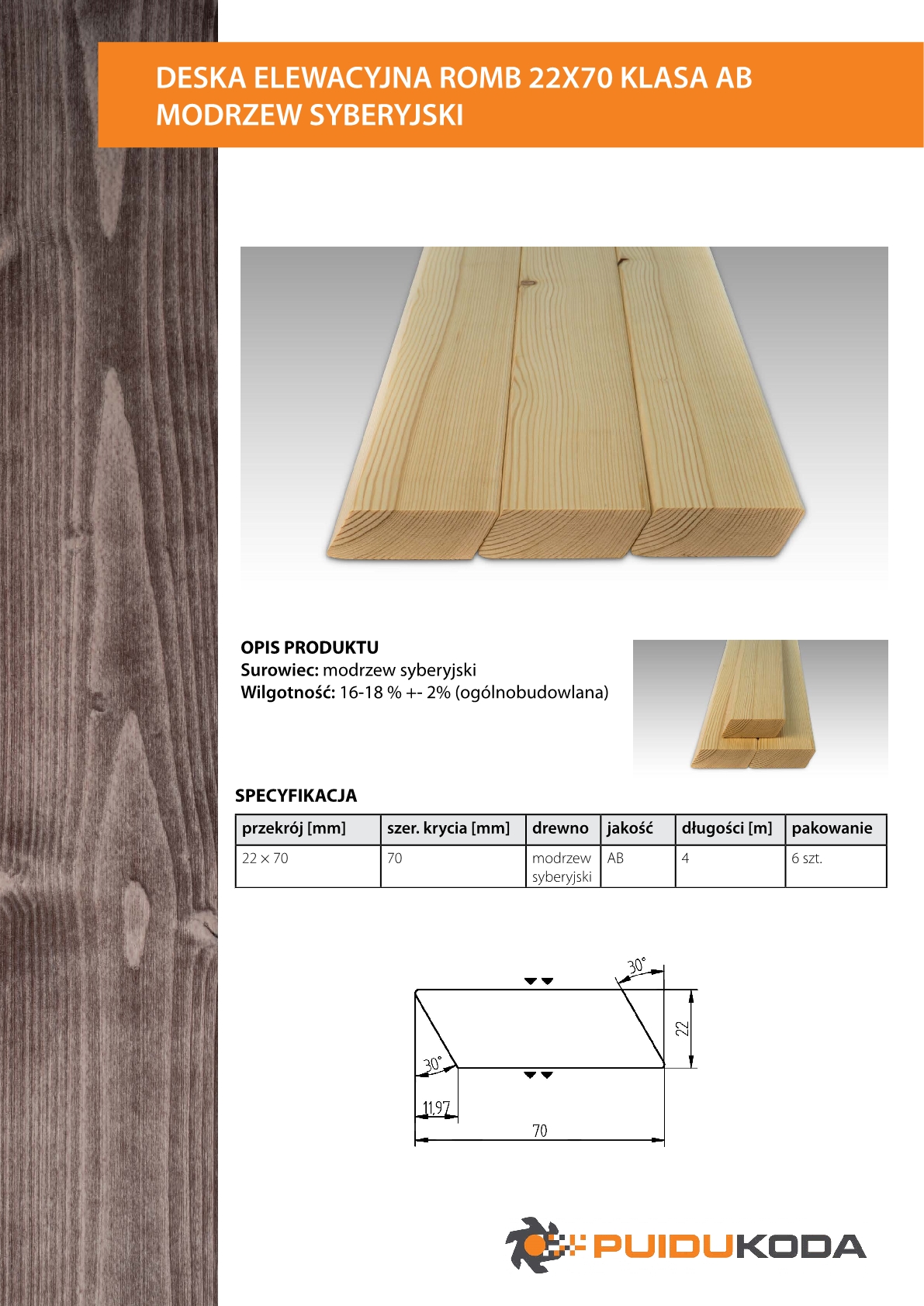 DESKA ELEWACYJNA ROMB 22X70 KLASA AB MODRZEW SYBERYJSKI   Wróć do kategorii