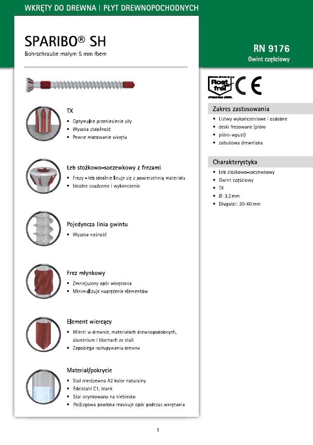 Wkręt do boazerii TX10, stal pokryta powłoką ocynku. Mała główka cylindryczna.