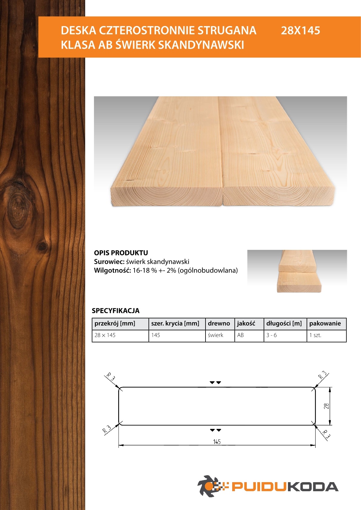 DESKA CZTEROSTRONNIE STRUGANA 28X145 KLASA AB ŚWIERK SKANDYNAWSKI   Wróć do kategorii