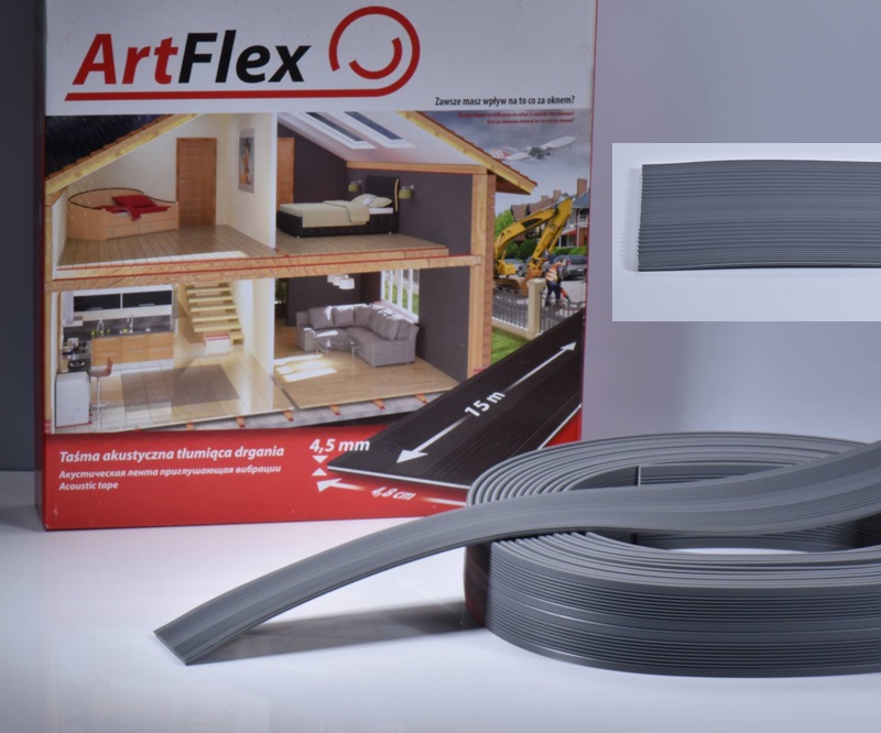 Taśma akustyczna wpływa na tłumienie drgań akustycznych. Specjalnie ukształtowane porowate powierzchnie zewnętrzne chronią dodatkowo przed utratą ciepła, zabezpieczają przed wilgocią oraz wyrównują nierówności podłoża. W taśmie izolacyjnej zastosowano trwałe połączenie dwóch tworzyw termoplastycznych o odmiennych właściwościach fizyko - mechanicznych a w szczególności o różnej gęstości i twardości, gdzie na styku tworzyw następuje rozproszenie i wytłumienie drgań.