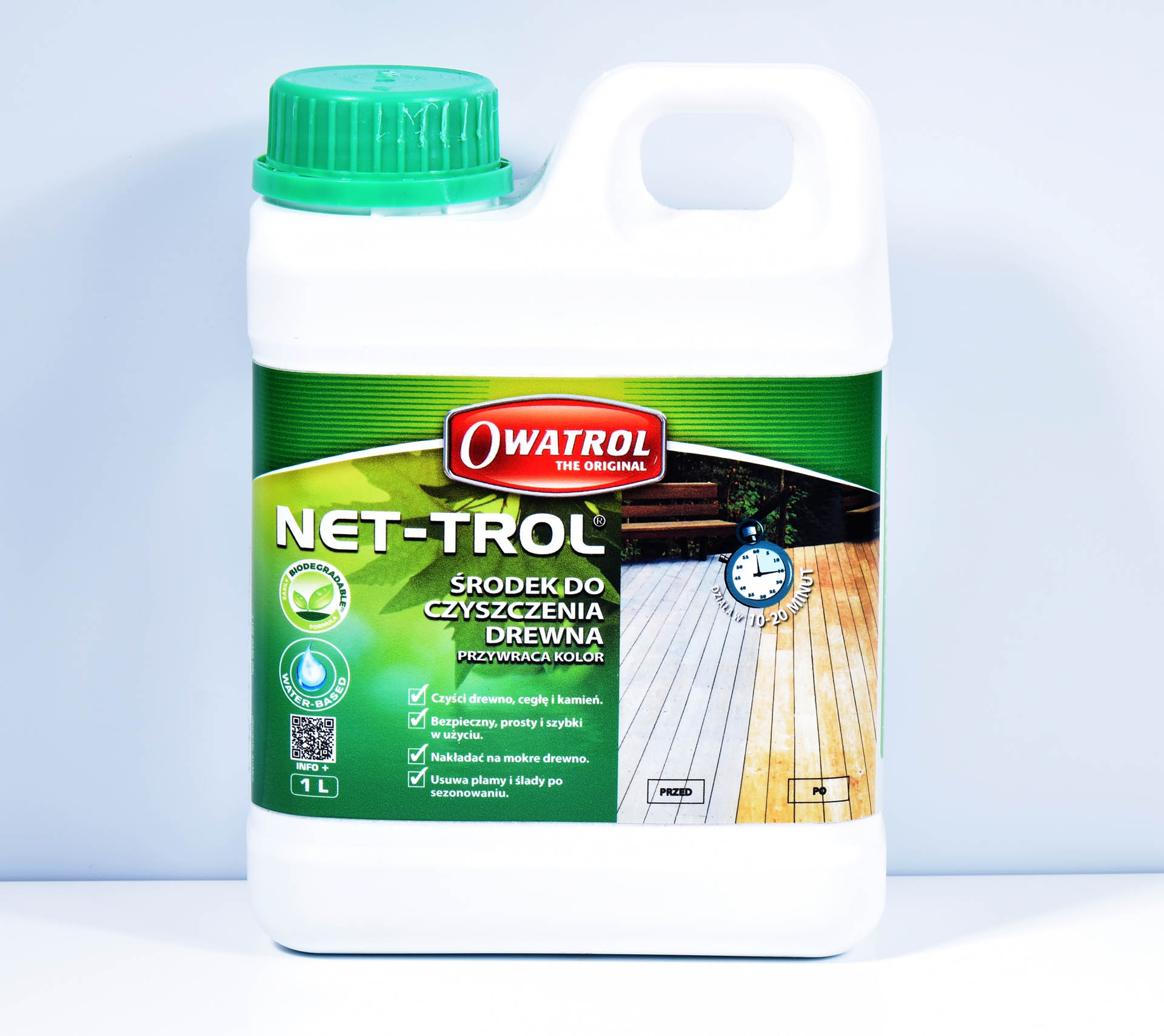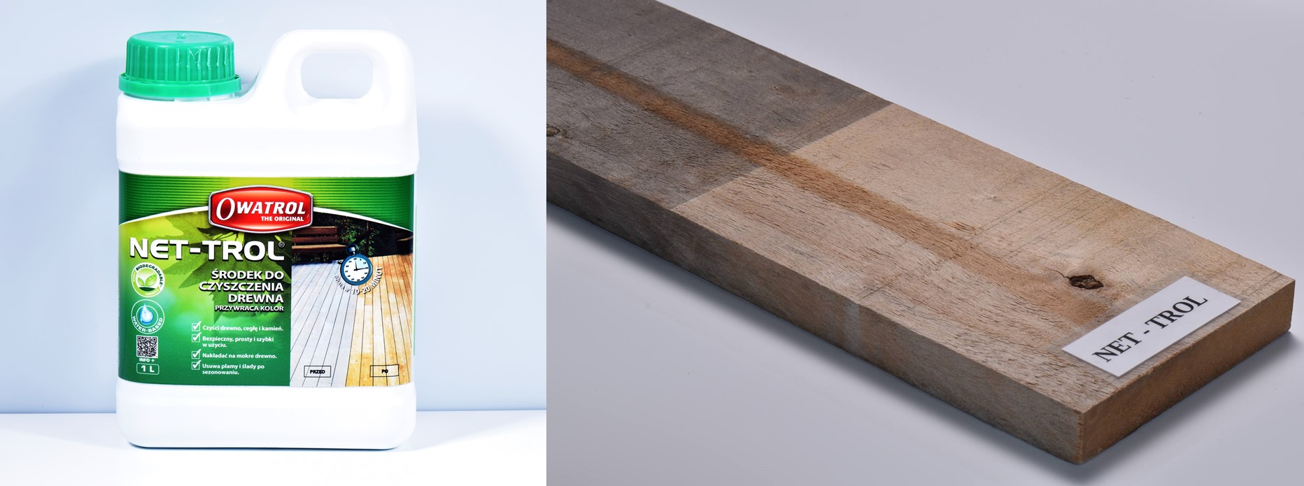 Rozjaśnia i przywraca kolor drewna które poszarzało wskutek działania warunków atmosferycznych. Nie wybiela koloru.