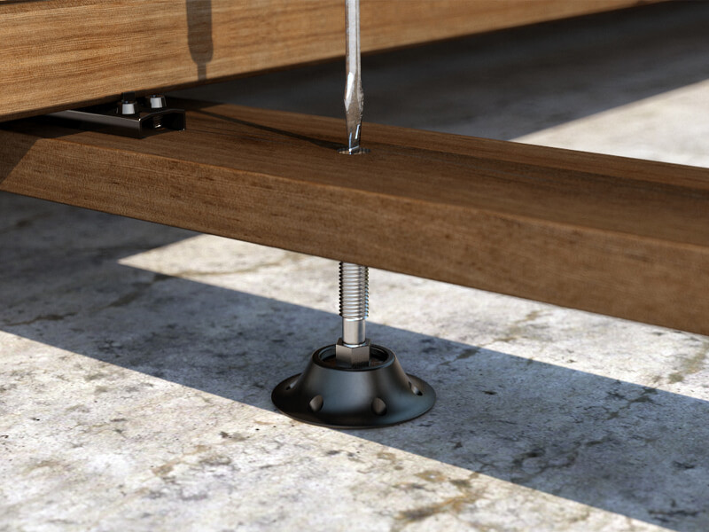JFA, regulowany wspornik do tarasów do podnoszenia i poziomowania konstrukcji.