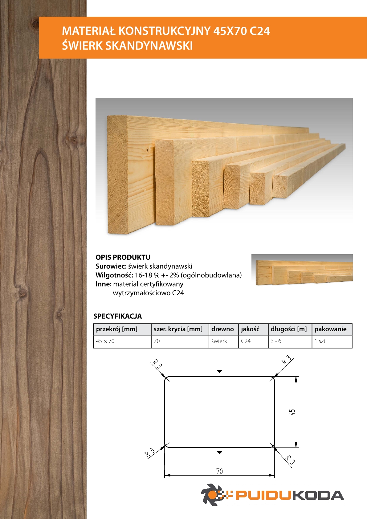| Przekrój [mm] | 45 × 70 |