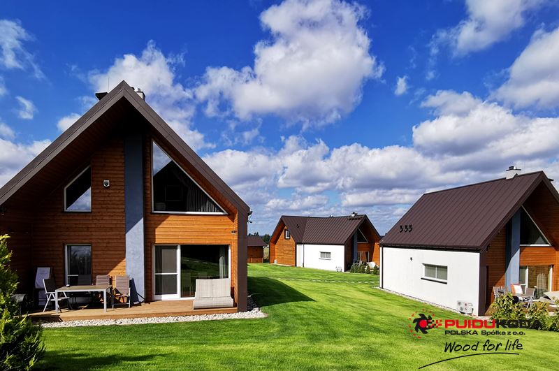 Całoroczne domy mieszkalne w Starych Sadach. Projekty domów z zastosowaniem elewacji drewnianych prezentują się bardzo atrakcyjnie w mazurskim krajobrazie. W