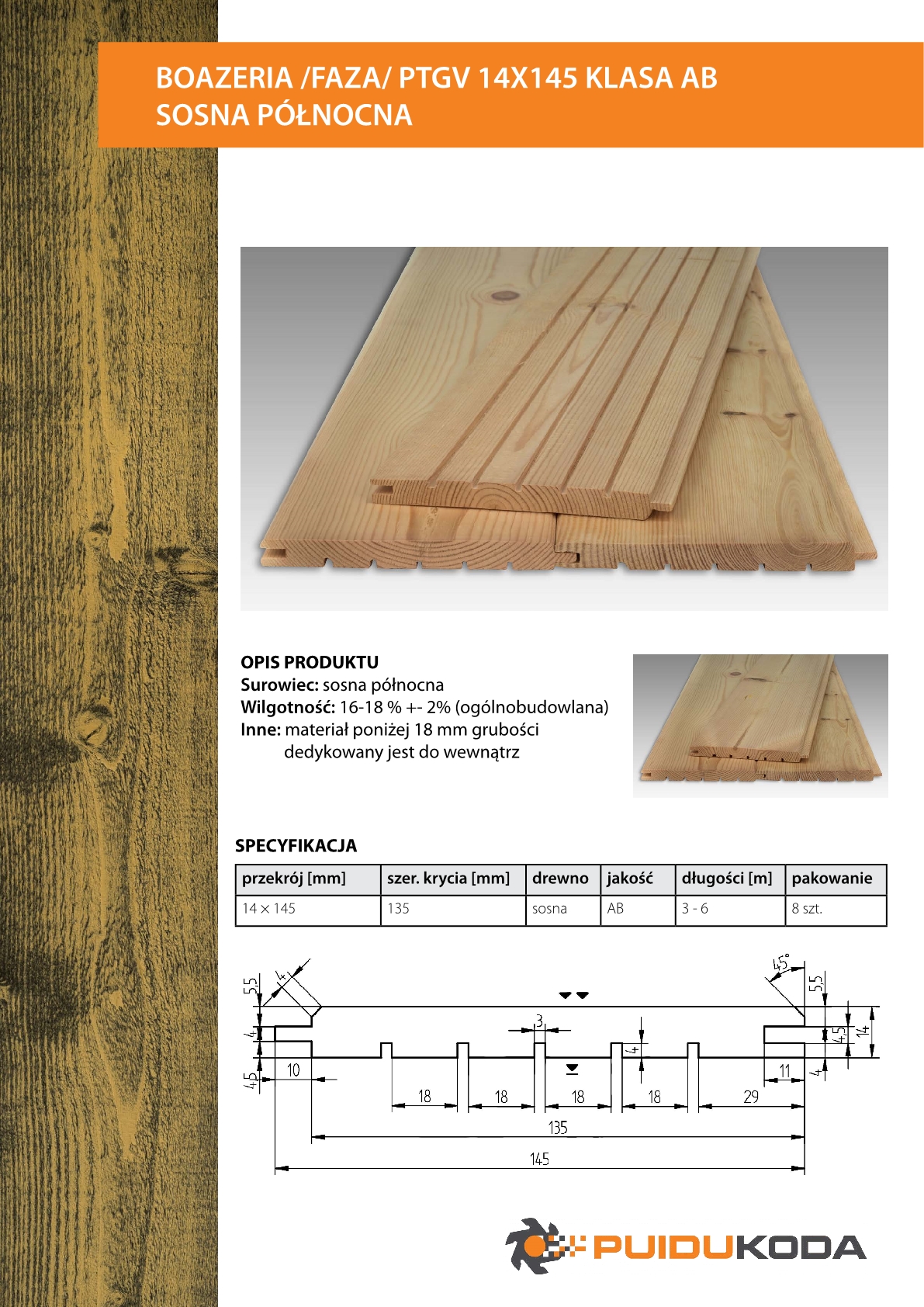 | Gatunek drewna | sosna |