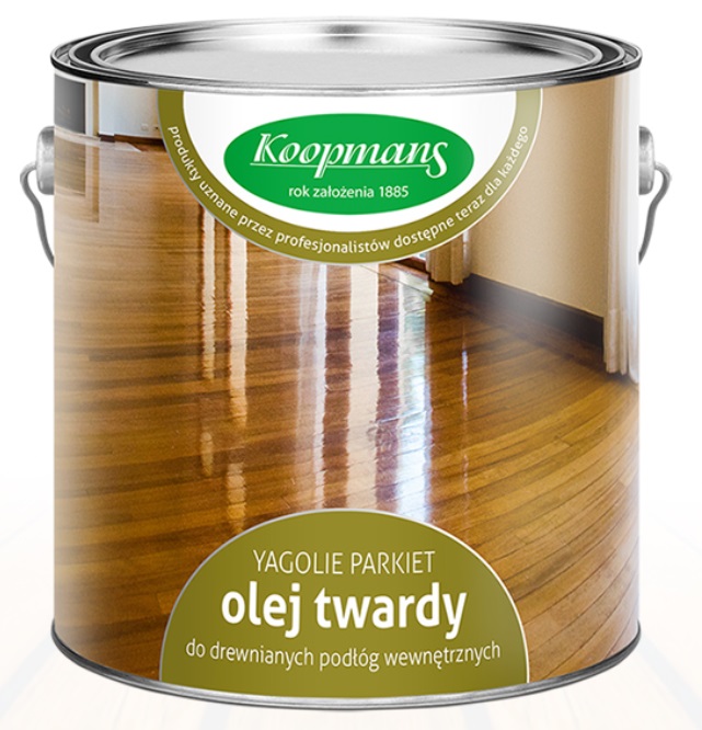 Naturalny olej twardy do drewnianych podłóg wewnętrznych na bazie oleju lnianego oraz tungowego (drzewnego) z dużą zawartością części stałych. Produkt doskonale impregnuje powierzchnię drewna zabezpieczając ją przed wnikaniem plam oraz brudu, zapobiega jej wysuszaniu oraz podkreśla naturalne piękno drewna. Parkiety, drewniane podłogi wewnętrzne wykończone olejem są wygodne w pielęgnacji i łatwe do regeneracji, nawet przy intensywnym użytkowaniu. Produkt idealnie łączy się z lakierami zarówno akrylowymi jak i alkidowymi linii Nelf / Koopmans.